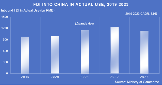 另外,如果再看商务部的另一份FDI数据(与国家外汇管理局的统计方法不同),近5年并没有出现大幅下降。相比之下,复合年增长率仅为 3.9%。