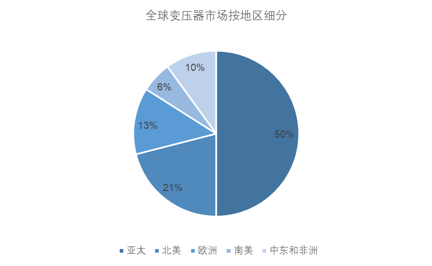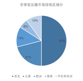 亚太市场占全球变压器市场的 50%左右,中国和印度是两大市场。该地区主要是发展中国家,因此对电能需求旺盛。
